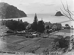 In 1844 or 1845, Scottish-born entrepreneur Robert Graham purchased the 40 acre property from Ngāti Rongo for the sum of for £16, clothes, blankets, tobacco and weapons.[4][5] Negotiations for the deal took two years, and in 1846 Graham began planting grape vines, strawberries and apple, cherry, guava, peach, and pear fruit trees. Cows grazed in the pasture land and provided milk. During these early times, the Indigenous people continued to use the area abundantly, and as many as 3,000 per day could be seen at the beach where the hot springs bubbled up from the ground.[3]