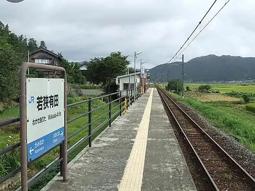 Wakasa-Arita Station (若狭有田駅, Wakasa-Arita-eki) is a railway station in the town of Wakasa, Mikatakaminaka District, Fukui Prefecture, Japan, operated by West Japan Railway Company (JR West).