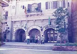 The Porto Europa theme park was created by MCA Planning and Development (P&D), which was Universal Studios' creative arm prior to its renaming as Universal Creative in 1997. The park was built using American specialty vendors and Japanese construction companies, and opened in July 1994. With a footprint of 4.5 acres (1.8 hectares), Porto Europa consists of three themed areas: a French, an Italian and a Spanish town.[9] There are three major attractions, a flume ride/dark ride combination, a motion simulator/film ride, and an indoor stunt show which is now closed, with the theater space empty. The smaller attractions at opening included a jazz club, disco, cinema, laser tag, and virtual reality installation.[10] There are also retail outlets, restaurants, and street shows.[11][12][13]