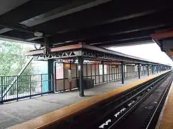 The Wakefield–241st Street station (signed as 241st Street) is a terminal station on the IRT White Plains Road Line of the New York City Subway, located at the intersection of 241st Street and White Plains Road in the Wakefield neighborhood of the Bronx.[3] It is served by the 2 train at all times.[4] This station is geographically the northernmost station in the entire New York City Subway system.