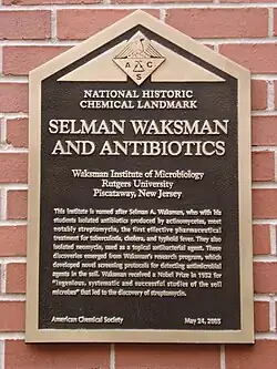 The Waksman Institute of Microbiology is a research facility on the Busch Campus of Rutgers University. It is named after Selman Waksman, a student and then faculty member at Rutgers who won the Nobel Prize for Medicine in 1952 for research which led to the discovery of streptomycin. The Nobel Prize is on display in the lobby of the institute. The institute conducts research on microbial molecular genetics, developmental molecular genetics, plant molecular genetics, and structural and computational biology.
