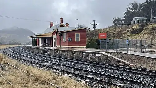 Walcha Road railway station is a heritage-listed railway station located on the Main Northern line in Walcha Road,New South Wales, Australia. The railway station serves the village of Walcha Road and town of Walcha, opening on 2 August 1882 when the line was extended from Kootingal to Uralla.[1] It is also known as Walcha Road Railway Station and yard group. The property was added to the New South Wales State Heritage Register on 2 April 1999.[2]