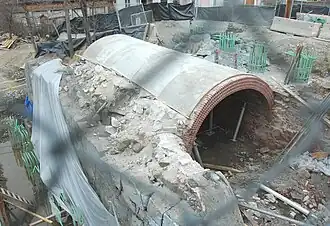 ![]() Usually nearly concealed under the Walden Street Bridge, the tunnel is seen here exposed during 2007-08 bridge reconstruction work. | |