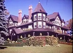 The structures on the estate by 1901 consisted of a lodge made of white stone near where the red-brick wall was broken by the main gateway.[1] The only other outbuildings of the estate as of 1901 was the stable to the north of the manor house, and a nearby tall windmill.[1] Waldheim itself was large with a wide veranda on three sides, high windows and several gables, all of which looked out over the meadows and gardens of the estate.[1] The house was built in wood and stucco, and it looked as if it was made more for comfort than for elaborate display.[1] Everything about this house and grounds, from its fences, stables, winding paths, roads, and grounds showed perfect maintenance.[1]