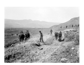 In the 1910s, the pumping of water up a 340-metre (1,100 ft) elevation from the river below was financially impractical.[138] After three decades of neglect, isolated apple trees in various spots did survive.[139] Technology advances in the 1950s offered inexpensive water for crops, where soil conditions were favourable.[137]