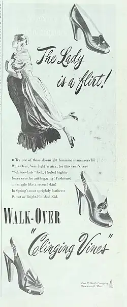 Walk-Over shoes is a historic shoe brand in the U.S. It was founded in 1874 by George Eldon Keith under the name George E. Keith Co.[1][2][3] He donated land to Brockton, Massachusetts and Keith Park was named for him.[4]