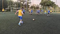 It is aimed at keeping people aged over 50 involved with football if, due to a lack of mobility or for other reasons, they are not able to play the traditional game.[1] The sport can be played both indoors and outdoors.[2] Coverage of a walking football session initially believed to be an April Fools' joke, on Sky Sports News and in a documentary aired on Sky Sports Football in October 2017, led to several other clubs taking up this version of the game.[3][4] It has since become a craze.[5][6]