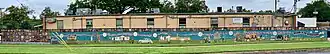 The Wall of Welcome is a 120-foot-long community public art mosaic located at 7100 Woodrow Avenue in the Crestview neighborhood of Austin, Texas. First envisioned by artist and Brentwood resident Jean Graham in 2002, the Wall reflects the community and documents some of the history of the Brentwood and Crestview neighborhoods. Fundraising for the wall began in 2003 with the first Violet Crown Festival. Jean and hundreds of neighbors worked together for five years to make the wall a reality; it was completed and dedicated in March 2008.[1][2]