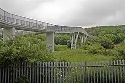 Bidston Moss was originally low-lying wetland marsh at the head of Wallasey Pool. In 1936 most of the land was given over to residential, commercial and industrial landfill. Since the cessation of waste disposal operations in 1995, Merseyside Waste Disposal Authority and the charitable trust Groundwork Wirral have undertaken environmental restoration works to landscape the site.[10] The site is now known as the Newlands Project Nature Reserve, is 68 hectares (170 acres) in size, with a fishing lake and a 2 kilometres (1.2 mi) of cycling trail.[11] The site is also accessible, to the public, from Cross Lane and the Wallacre in Wallasey.[12] The nearest car park is at Bidston station.[13]