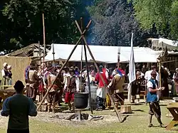 Throughout the week, the historical camp life is reenacted in Grimmelschanze and Reichshain Park. Each group sets up its own camp, with many selling food and drinks or entertaining visitors with shows and performances.