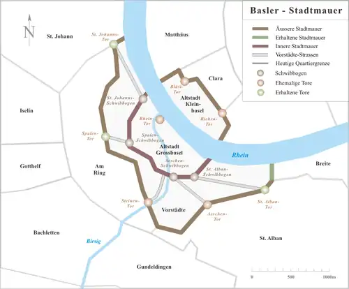 - ^ Müller, C. A. (1956). "Die Stadtbefestigung von Basel". Neujahrsblatt der GGG (in German). 134: 12–14.
