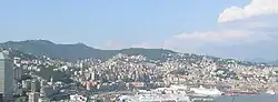 The view of Genoa from the sea is characterized by the line of New Walls with their fortifications, on the ridge of the hills, above the hilly quarters which grew after World War II; coming from the north, by train or car, the first visible structure is the mass of Fort Diamante, high on the mount on the left bank of the Val Polcevera, and the Fort Fratello Minore. Shortly after, on the ridge in the distance is Fort Begato, included in the line of bastions that rise up to the top of Mount Peralto, where sits Fort Sperone with its high walls.