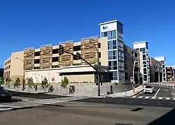 A parking lot on the west side of the station closed on February 3, 2018. The 900-space south parking garage was constructed in its place, which allowed other parking lots to be closed for the new development.[16] The new garage, which includes a three-lane bus plaza, opened on March 29, 2019. The north and east parking lots closed at that time.[17] Construction of a 358-unit apartment building on the north lot took place from 2019 to 2023; development of the east lots is planned.[18][14] The vehicle and pedestrian entrance from North California Boulevard was relocated to the north on November 10, 2022.[19]