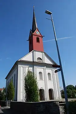 From the 2000 census, 1,273 or 62.7% were Roman Catholic, while 478 or 23.6% belonged to the Swiss Reformed Church. Of the rest of the population, there was 1 individual who belonged to the Christian Catholic faith.[9]
