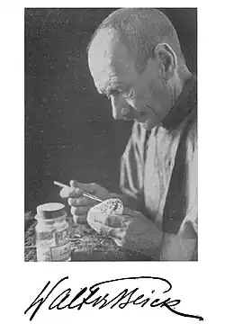 Beick was born in Võru, Estonia, which was then a Baltic province of Russia. The son of a lawyer, he went to school at St. Petersburg in the gymnasium of Dr Wiedemann and then at the Eberswalde forestry school. He served in the First World War with the Russian army and was wounded on the German front. He then settled in Russian Turkestan and from 1916 began to make hunting trips from the Ala-tau mountains. His knowledge of the region led to him being chosen to lead a commando expedition against nomadic tribes. In 1917, he moved to Prezewalsk on the shore of Issy-Kul and in 1918 he worked in the forest service in Sepsinsk. He was briefly the director of the Forest School in Werny. In 1920, he was forced to give up all his possessions including his collections to the Bolsheviks and fled to Chinese Turkestan, where he lived by hunting and fishing. In 1925 he was supported for a collection expedition to Ebi Nor by the Berlin Museum under the director Paul Matschie. He travelled to Siningfu in 1927 where he met and travelled with Wilhelm Filchner and then moved on to the South Tetung followed by Koku Nor along with Friedrich Wagner. He then moved to Sining and stayed for two years. He joined Birger Bohlin of the Sino-Swedish Expedition led by Sven Hedin and spent some time in Tsag Nor and was hoping to return to Germany. On the way at Wajan Tori he suffered from a breakdown and in a fit of depression he shot himself. He was buried in the desert with a cross inscribed "Walter Beick, 25 March 1933" at 42° N, 101° 19′ 6″ E.[1][2]