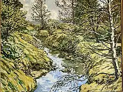 - ^ The Carnegie Museum of Art awarded Schofield its 1904 gold medal for Across the River. Redfield served on the Carnegie's art jury that year, but was outvoted by the other jurors. In a 1963 interview, Redfield, age 93, claimed that the painting depicted a site that he had shown to Schofield, who then returned to England and reproduced the scene from memory.[23] Art historian Thomas Folk discovered the likely reason for the intensity of Redfield's anger toward Schofield: Across the River depicts the Delaware River from the front yard of Redfield's own house.[22]