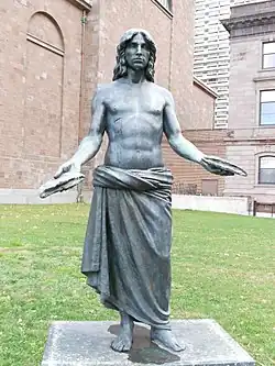 His public works of art include the bronze sculpture Jesus Breaking Bread, commissioned in 1976 for the Eucharistic Congress and located on the grounds of Cathedral Basilica of Saints Peters and Paul in Philadelphia,[2] and two life size figures for the Dream Garden in the lobby of the ARA Tower.[3]