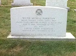 He was buried with full military honors at Arlington National Cemetery, Virginia. His honorary pallbearers were his West Point Classmates: Stephen J. Chamberlin, Roscoe C. Crawford, Wade H. Haislip, Robert M. Littlejohn and Sidney P. Spalding. Robertson's wife, Lorene Crebs (1891-1964) is buried beside him.[2]