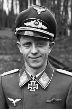 - Knight's Cross of the Iron Cross on 16 December 1944 as Hauptmann and Gruppenkommandeur of the II./Jagdgeschwader 2 "Richthofen"[31][Note 8]