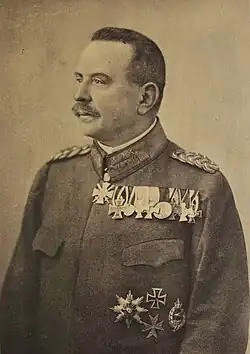 Lieutenant-General Friedrich Wilhelm Magnus Heinrich Walter von Eberhardt (7 January 1862 in Berlin – 7 January 1944 in Wernigerode),[1] generally known as Walter von Eberhardt, was a German military commander during World War I and the Lithuanian–Soviet War of 1918–19. He was the son of later Prussian Major general Heinrich von Eberhardt (1821–1899). His older brothers also made career in the Prussian army. Magnus (1855–1939) raised till General of Infantry, Gaspard von Eberhardt (1858–1928) to Lieutenant general.[2] Notably, he was the first inspector of the flying troops (Idflieg) from 1913 to 1914. In 1930 Unserere Luftstreitkräfte 1914–1918 was published under the editorship of von Eberhardt.[3]