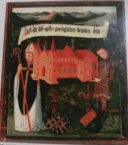 ![]() Walter von Lomersheim (right) and Günther von Henneberg (left) flank Maulbronn Monastery | |