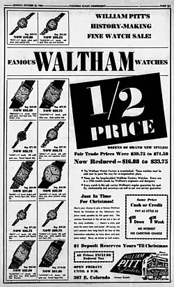 70. ^ a b "Waltham Watch Has New Sales Policy," Lewiston [ME] Daily Sun, Jan. 23, 1952, p. 1.