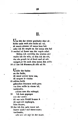 - "Under der linden" (L39,11;C 16): the anonymous "En mai au douz tens novels"