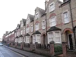 The houses on Walton Well Road were built between 1873 and 1897.[16] Many were designed by the architect H. W. Moore (who also designed the fountain in the street mentioned earlier) in the 1880s, some in collaboration with William Wilkinson.[8] No. 2 Walton Well Road, an imposing double-fronted residence, was the house of the ironmaster at the adjacent Lucy's foundry.[17] On the south side of the street is the "Elijah terrace", a row of terraced houses built by Joseph Codgbrook Curtis.[1] These include nine carved panels by the local sculptor Samuel Grafton, based in Cowley Road, Oxford, on aspects of the biblical story of the prophet Elijah in the Old Testament.