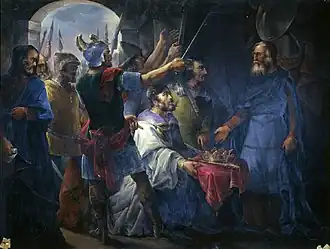 The tonsuring of king Wamba by Joan Brull. Oil on canvas (1894)