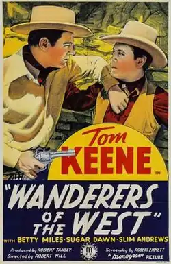 Wanderers of the West is a 1941 American western film directed by Robert F. Hill and written by Robert Emmett Tansey. The film stars Tom Keene, Sugar Dawn, Slim Andrews, Betty Miles, Tom Seidel and Stanley Price. The film was released on July 25, 1941, by Monogram Pictures.[1][2][3]