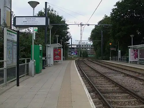 Wandle Park tram stop. Westbound platform looking west | |||||