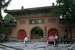 Late in the year, the eunuch Han Quanhui, fearing that Emperor Zhaozong and the chancellor Cui Yin were planning to massacre the eunuchs, seized Emperor Zhaozong. Cui, in response, summoned Zhu Quanzhong the military governor of Xuanwu Circuit (宣武, headquartered in modern Kaifeng, Henan) to bring an army to Chang'an. As Han was allied with LI Maozhen, he forcibly took Emperor Zhaozong to Fengxiang. Zhu then put Fengxiang under siege, claiming that he wanted to restore the emperor to the proper place in Chang'an. Both Zhu and Li Maozhen sought an alliance with Wang Jian. Wang played both sides — outwardly announcing agreement with Zhu, while secretly sending messengers to Li Maozhen urging him to resist Zhu — and yet at the same time sent Wang Zongji and Wang Zongdi north, seeking to seize the prefectures south of the Qinling Mountains that Li Maozhen still controlled.[16] By spring 902, Li Maozhen's adoptive son Li Jizhong (李繼忠) the military governor of Zhaowu Circuit (昭武, headquartered at Li Prefecture) abandoned Li Prefecture, allowing Xichuan forces to seize it. Subsequently, Wang Zongbo and Wang Zongdi captured Xingyuan, and Li Maozhen's adoptive son Li Jimi (李繼密), then the military governor of Shannan West, was forced to surrender as well. Wang Jian initially made Wang Zongdi the military governor of Shannan West, but subsequently, getting reports from Wang Zongji that made accusations against Wang Zongdi, and fearing that Wang Zongdi was both loved by the soldiers, he summoned Wang Zongdi back to Chengdu and had him strangled. He made another adoptive son, Wang Zonghe (王宗賀), the acting military governor of Shannan West. Subsequently, Li Sijing (李思敬) the military governor of Wuding Circuit (武定, headquartered in modern Hanzhong) surrendered as well. By this point, Wang Jian had captured all of Li Maozhen's former territory south of the Qinling Mountains, partially leading to Li Maozhen's subsequent agreement in 903 with Zhu to kill Han and his associates and to give the emperor to Zhu in return for lifting the siege on Fengxiang.[17] After Emperor Zhaozong returned to Chang'an, Cui and Zhu ordered that all eunuchs be massacred. However, Wang protected Yu Quanyan (魚全禋) the eunuch monitor for Xichuan and the prominent retired eunuch Yan Zunmei (嚴遵美) from execution, instead executing two inmates that he claimed to be Yu and Yan.[17][18]