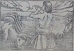 Wang lived in Tibet in the 1980s, where he worked as an art director for the military district of Tibet. In 1982, he created the illustrations for two picture books recounting the Tibetan folklores, The Story of Akhu Tönpa and The Swan. The latter won a second prize in the Exhibition of Fine Arts of the Tibet Autonomous Region.[1] In 1986, with The Eternity, a wood carving painting, he was awarded the Creative Excellence Award in the fifth Exhibition of Fine Arts of Tibet;[2] and several of his sketches were published in the Tibetan newspaper Lhasa Evening, in the same year.[3]
