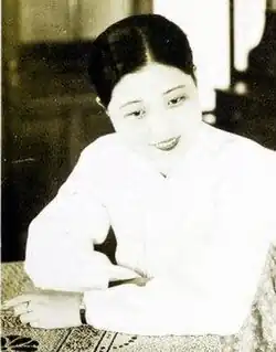 Born in 1917,[1] Wang Su-bok studied at the Chosen Dancing Girls School in Pyongyang, which specialised in gisaeng training.[2][3] This trained girls in singing, dancing, musicianship and costume.[4] She graduated in 1931.[5] Her debut as a gisaeng singer came in 1933, and she was very popular during the rest of the decade.[6][1][7][8] One of Wang's most popular songs was Ulchi marayo (Don't Cry).[9] One of the styles in which she sang was kinminyo, a traditional folk style.[10] She was signed to both Columbia and Polydor Records.[9] Others who were popular at the same time were Lee Eun-pa and the Jeogori Sisters.[2]