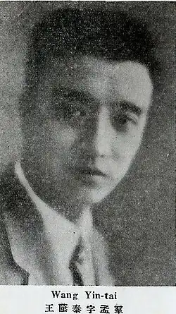 Wang Yintai (traditional Chinese: 王蔭泰; simplified Chinese: 王荫泰; pinyin: Wáng Yìntài, Wade-Giles: Wang Yin-t'ai) (1886 - December 15, 1961) was a politician in the Republic of China. He belonged to Fengtian clique, later he became an important politician during the Provisional Government of the Republic of China and the Wang Jingwei regime (Republic of China-Nanjing). He was born in Fenyang, Shanxi, and original place was Shaoxing, Zhejiang. His father was a politician and scholar, Wang Shitong (王式通).