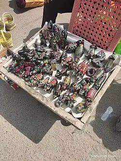 "The Ni Ni Dog," also known as "Ling Dog," is a type of clay toy unique to Huaiyang District, Henan Province, China. According to legend, it is a divine dog tasked with guarding the tomb of Fuxi and Nuwa, revered figures in Chinese mythology, thus holding a sacred status in the local culture. This traditional art form carries ancient worship and beliefs, considered as a "living fossil" of Chinese primitive society.