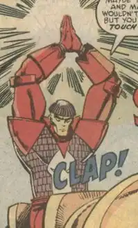 Abraham Kieros is a mutant with the power to create explosions in his immediate area by clapping his hands. He does so by harnessing the minor kinetic force created when his hands strike each other, amplifying it to a significant degree, and redirecting it spatially so that it strikes and affects some other object in his line-of-sight, causing an explosive release of force. The limits of the range in which his power is effective have not yet been determined.