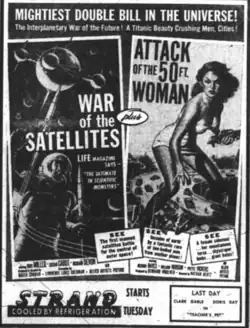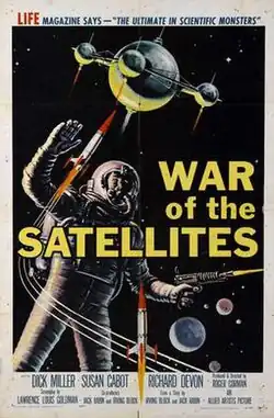 War of the Satellites is a 1958 independently made American black-and-white science fiction drama film produced and directed by Roger Corman and starring Richard Devon, Dick Miller, and Susan Cabot. It was distributed in the U.S. and the U.K. by Allied Artists. In the U.S., it was released as a double feature with Attack of the 50 Foot Woman.