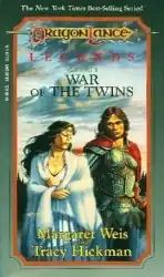 War of the Twins is a 1986 fantasy novel by American writers Margaret Weis and Tracy Hickman. Part of the Dragonlance series of novels, it is the second novel in the Dragonlance Legends trilogy, which details the journey of the fictional twins Raistlin Majere and Caramon Majere, along with Crysania and Tasslehoff Burrfoot. The book details their adventures during the Dwarfgate Wars, some 100 years after the Cataclysm, a monumental event in the Dragonlance world that altered the shape of the world. The story sees Raistlin, Caramon, and Crysania arrive in the Tower of High Sorcery at Palanthas. Caramon, before bent on stopping Raistlin's quest for godhood, must now aid him to return to his own time period.