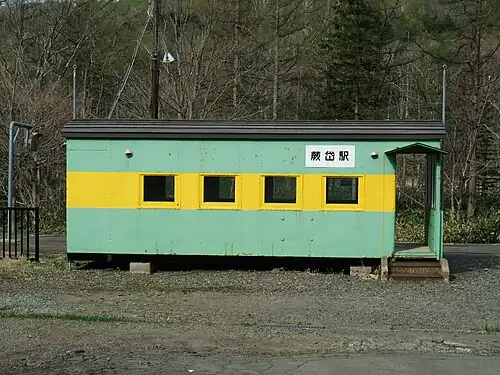 - ^ a b c 廃止の10無人駅 思い出の駅舎さようなら 住民ら幕掲げ感謝 [10 unstaffed stations close]. Doshin Web (in Japanese). Japan: The Hokkaido Shimbun Press. 4 March 2017. Archived from the original on 4 March 2017. Retrieved 4 March 2017.