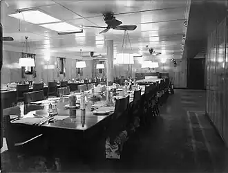 The wardroom provides a place of rest, relaxation and recreation, as well as being an officers' dining room.[1][4] Usually, a galley or scullery adjoins the wardroom. Table service is provided by stewards, now known in some services as mess specialists or culinary specialists.