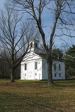 Ware was settled in the 1717 and incorporated in 1775. Its town center was laid out in 1760, on land belonging to one of its early large landowners. The first colonial meeting house was built in that year, near the geographic center of the town, and the road network developed around access to this area from the corners of the town. It had services typical of a town center, including a tavern and blacksmithy, but other industrial activity was modest, and was eclipsed in the 19th century by the industrialization of Factory Village, where the modern town center is located. The village retained much of its early Georgian and Federal character in part because the economic focus in the town moved with the advent of industrialization elsewhere in the town during the 19th century.[2]