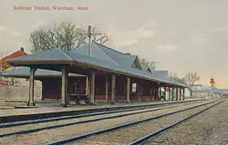 The Cape Cod Railroad was completed from Middleborough to Wareham in January 1848, with later extensions to Buzzards Bay and onto Cape Cod itself. Stations were located at a number of locations in Wareham: Tremont (West Wareham) at the junction with the Fairhaven Branch at Pierceville Road, South Wareham (Burbanks) at Station Road, Parker Mills at Elm Street, Wareham on Main Street at Centre Street, Tempest Knob at Indian Neck Road, and Onset (known by a variety of names) at Depot Street.[3] The line was taken over by the Old Colony Railroad in 1872, which itself became part of the New Haven Railroad system in 1893.[3] The New Haven built a new station in 1900.[4]