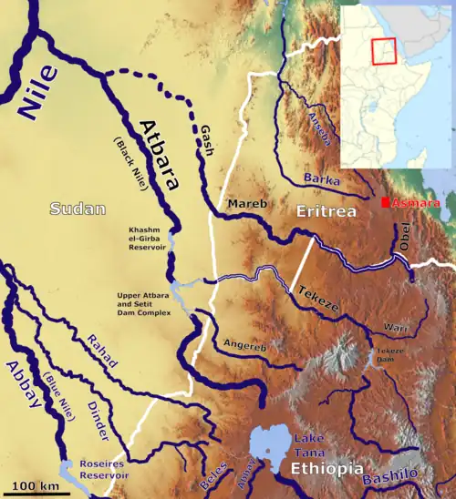 ![]() Map showing the Atbara basin, with the Wari River (right) | |