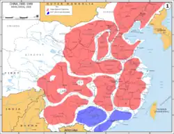 ![]() Major Chinese warlord coalitions in 1925. The blue area was controlled by the Kuomintang, which later formed the Nationalist government in Guangzhou. | |||||||||||||||||||||||||