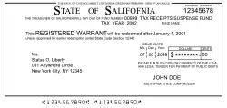 In government finance, a warrant is a written order to pay that instructs a federal, state, or county government treasurer to pay the warrant holder on demand or after a specific date. Such warrants look like checks and clear through the banking system like checks, but are not drawn against cleared funds in a checking account (demand deposit account). Instead, they may be drawn against "available funds" or "out of fund 0027" so that the issuer can collect interest on the float or delay redemption. If the warrant is conditional on funds being available, the warrant is not a negotiable debt instrument.[5][6] In the United States, warrants are issued by government entities such as the military and state and county governments. They are issued for payroll to individual employees, accounts payable to vendors, to local governments, to taxpayers receiving tax refunds, to recipients of unemployment benefits, and to owners of unclaimed money.