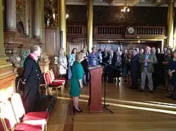 In 1906 Warrender Baths closed for economic reasons but the Club carried on at Portobello swimming pool. In 1908, Edinburgh Corporation purchased the site and opened the baths to the public. Warrender Baths Club returned to its original location[3] and in 1910 a ladies section was formed.[6] The club wound down activities during World War I as all senior club members joined the forces. A plaque in the front lobby of Warrender Baths commemorates those who died in this war – one, David McGregor, was awarded Britain's highest award for valour, the Victoria Cross.[6][7]