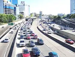 Warringah Freeway is a 3.5-kilometre (2.2 mi)[1] divided freeway in Sydney, New South Wales, Australia that is part of the Sydney Orbital Network. The primary function of the freeway is to provide an alternative high-grade route from the Sydney Harbour Tunnel and Bradfield Highway at Milsons Point to the A8 and Gore Hill Freeway. The freeway reduces traffic demands on Pacific Highway throughout Sydney's Lower North Shore, bypassing North Sydney and Crows Nest,[3] and provides a vital link to access most of the suburbs in Sydney and is also a major route to the north, south, east and west of the central business district.