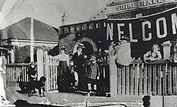 When Warringah Shire Council was formed in 1906, the Council first met in the Narrabeen Progress Hall on 14 June 1906, before moving to Brookvale.[1] From March 1907 the Council leased "Smith's Hall" (later to be known as "Empire Hall") in West Street, Brookvale from Mr W. Smith to act as their council chambers.[2] On 26 February 1910, a more permanent chambers was built on Pittwater Road, facing the land that would soon become Brookvale Oval. The opening was conducted by Shire President Alexander Ralston and was attended by Dr. Richard Arthur, Member for Middle Harbour.[3] This first Council Chambers was a small Federation Bungalow style building which served both as council offices and the Shire Clerk's residence.