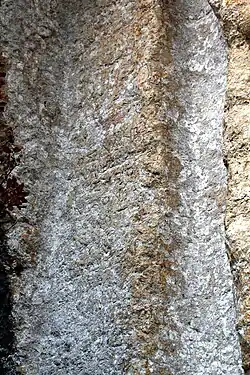 On the left pilaster there is an inscription at about chest height, which has been resolved as an 8 line inscription:
